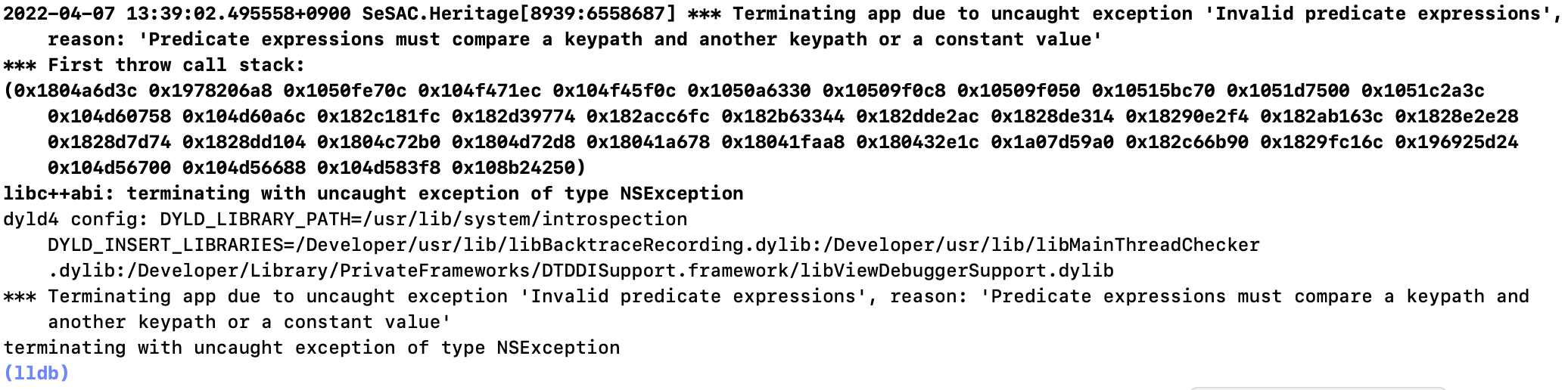 "Predicate expressions must compare a keypath and another keypath or a constant value"